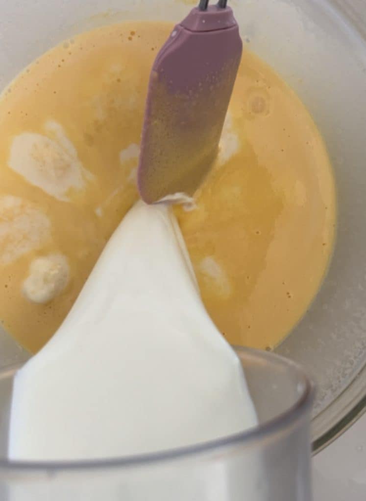 Begin een beetje melk toe te voegen, die in tegenstelling tot normaal niet warm is maar op kamertemperatuur.