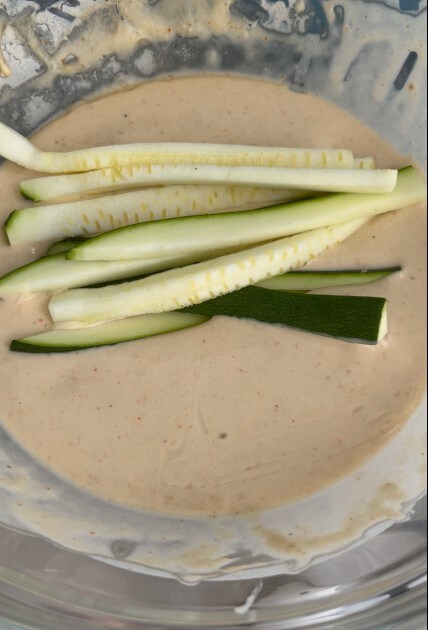 30 minuten voordat je gaat frituren, haal het beslag eruit en voeg de groenten toe terwijl ze nog niet helemaal ontdooid zijn