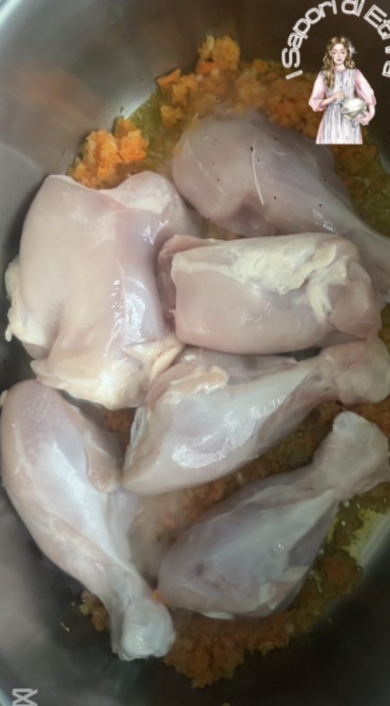 In de pan wortel in stukjes snijden en fruiten met extra vergine olijfolie