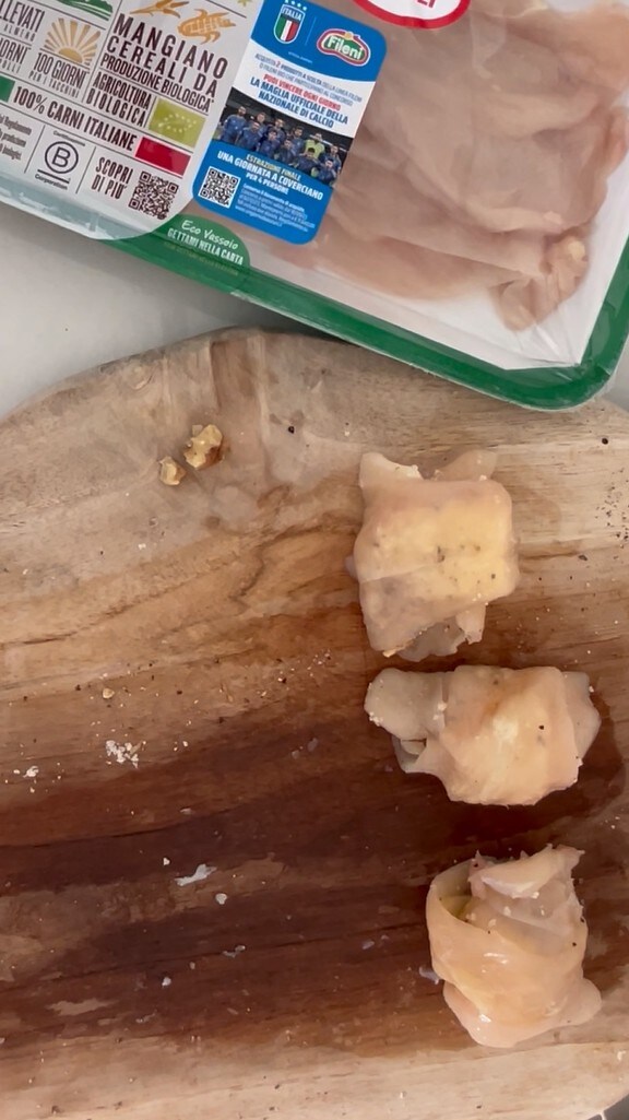 De Kiprolletjes met walnoten honing en scamorza is een hoofdgerecht dat echt eenvoudig en smakelijk is om bij elke gelegenheid te maken. Het is echt gemakkelijk te bereiden en vooral heerlijk. Kip is absoluut een van de meest geliefde en gebruikte vleessoorten in de keuken, vooral in een dieet. Het hangt natuurlijk af van de kruiden en de hoeveelheid die men eet. In dit geval heb ik dunne plakjes kip gevuld met een heel dun plakje gerookte scamorza, een walnoothelft en een beetje honing, ze opgerold, gepaneerd en in de oven gekookt. Dus zeker lichter dan de klassieke Pugliese ovenrollade. In dit geval is het vlees erg dun en bevat heel weinig kruiden.