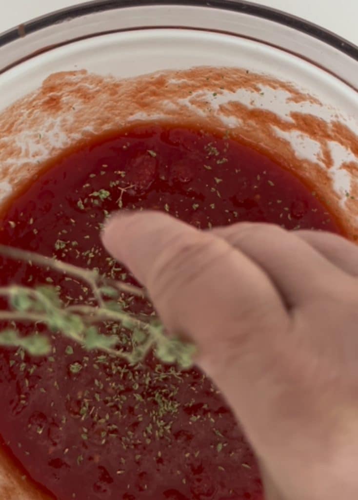 breng op smaak met de tomaat royaal tot aan de randen en bak de pizzetta’s op de maximale temperatuur van je oven, de mijne is 250 graden, aanvankelijk op de bodem van de oven gedurende 12 minuten en de laatste drie minuten boven voor 3 minuten.