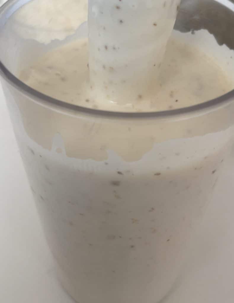 Voeg de bechamelsaus en de walnoten toe in een kan.