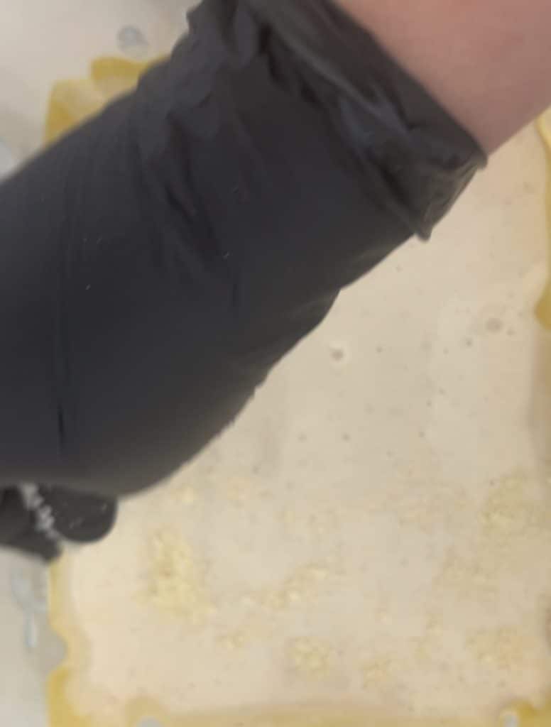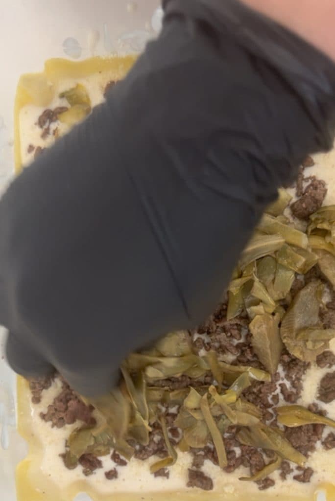 Begin met het samenstellen van de lasagne met een eerste laag bechamelsaus.