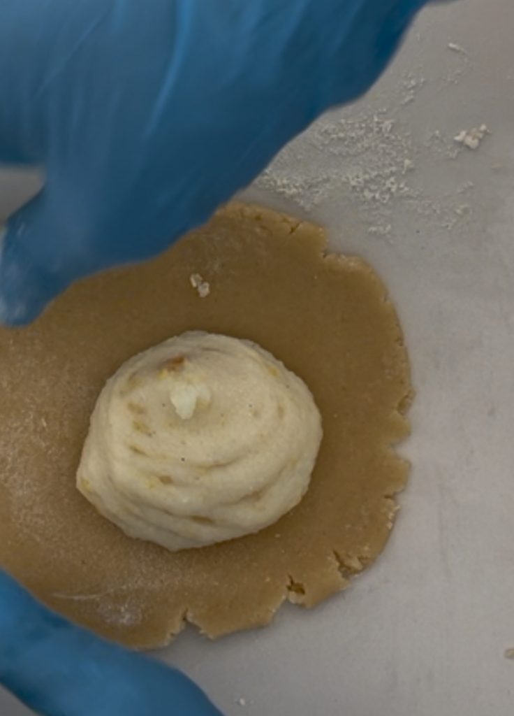 Ik raad aan om elke frolla die je maakt in de koelkast te zetten. Zodra alle sfogliatelle zijn gemaakt, laat je ze 15 minuten in de koelkast rusten en bak je ze