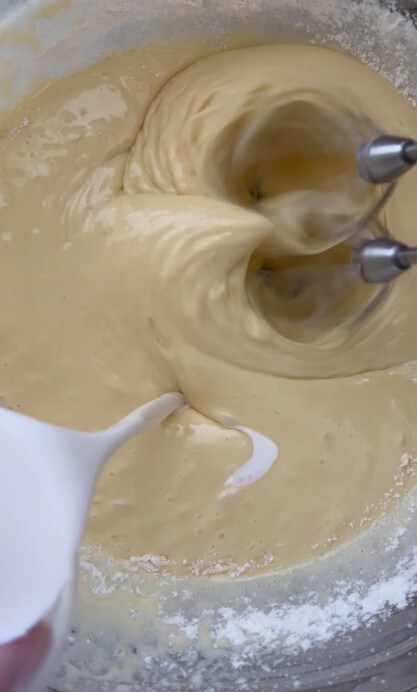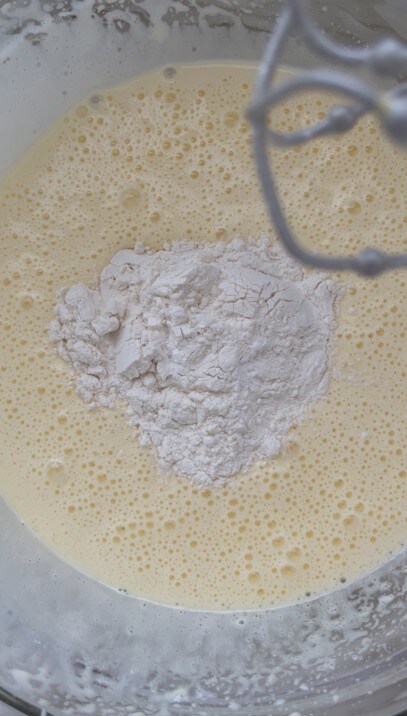 • Voeg de bloem toe, waar we het bakpoeder hebben toegevoegd.