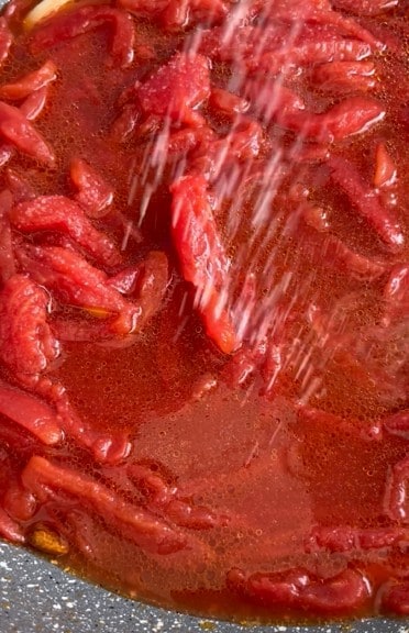 Natuurlijk, als je een ander soort tomaat hebt omdat we in oktober zijn en je geen San Marzano kunt vinden, kun je hem gerust vervangen.