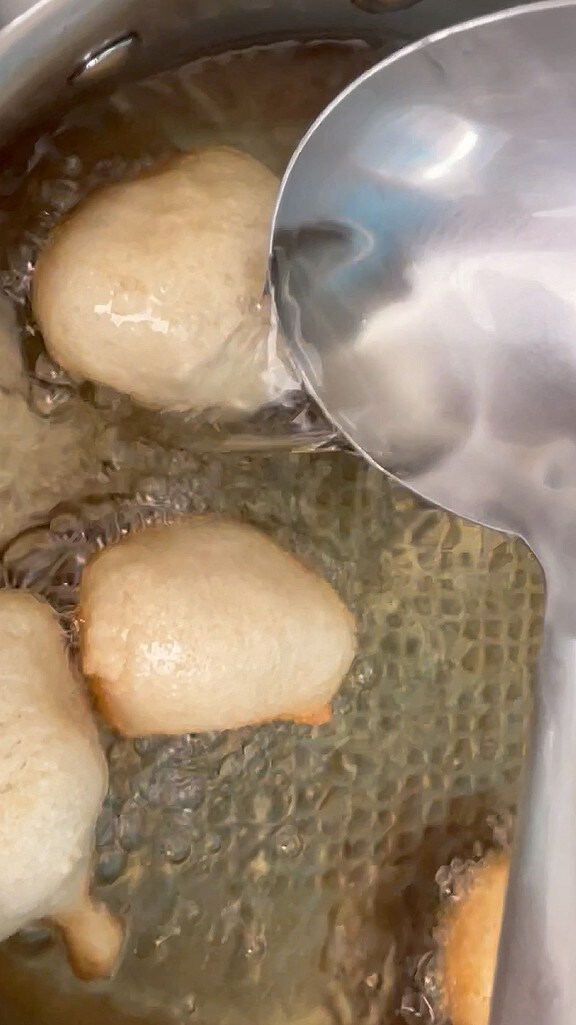 • De pettole beginnen te zwellen. Laat goed koken, ze moeten goudbruin worden