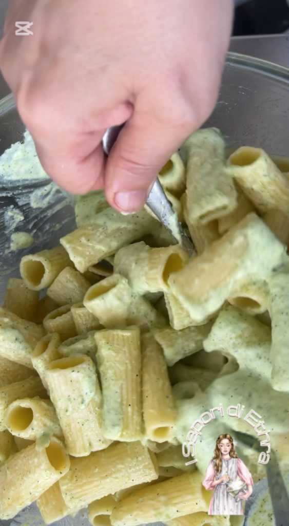 Giet een beetje van de verkregen crème en meng de pasta goed door.