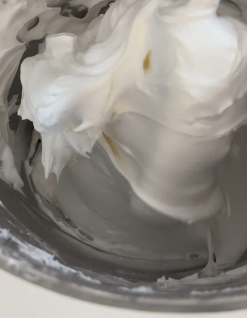 mix en klop minstens 10 minuten en voeg beetje bij beetje de suiker toe die je eerder in een kom hebt gemengd.