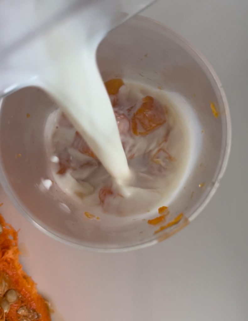 en mix alles tot een crème met de staafmixer.