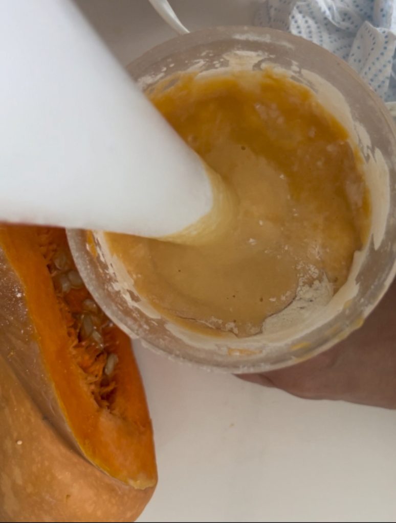 Neem een soeplepel van het mengsel