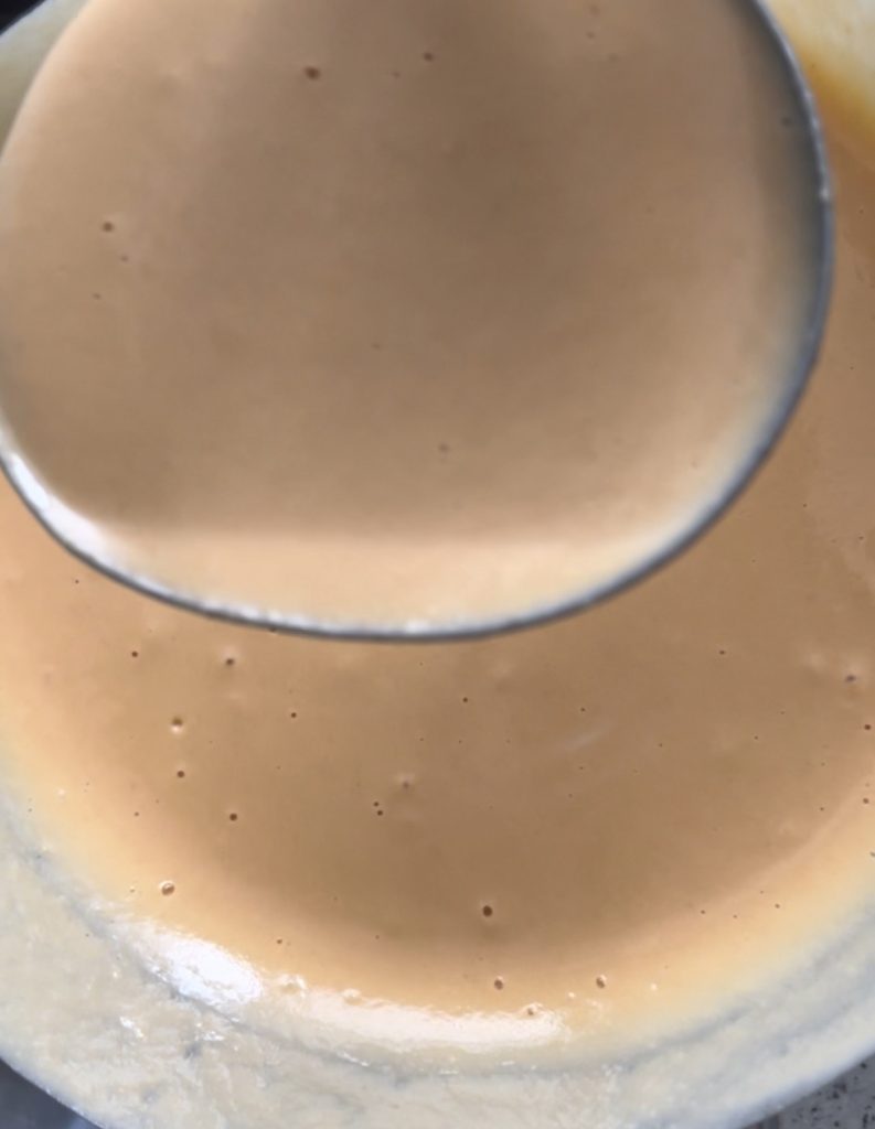 giet het op de bakplaat en spreid het uit tot de gewenste grootte.
