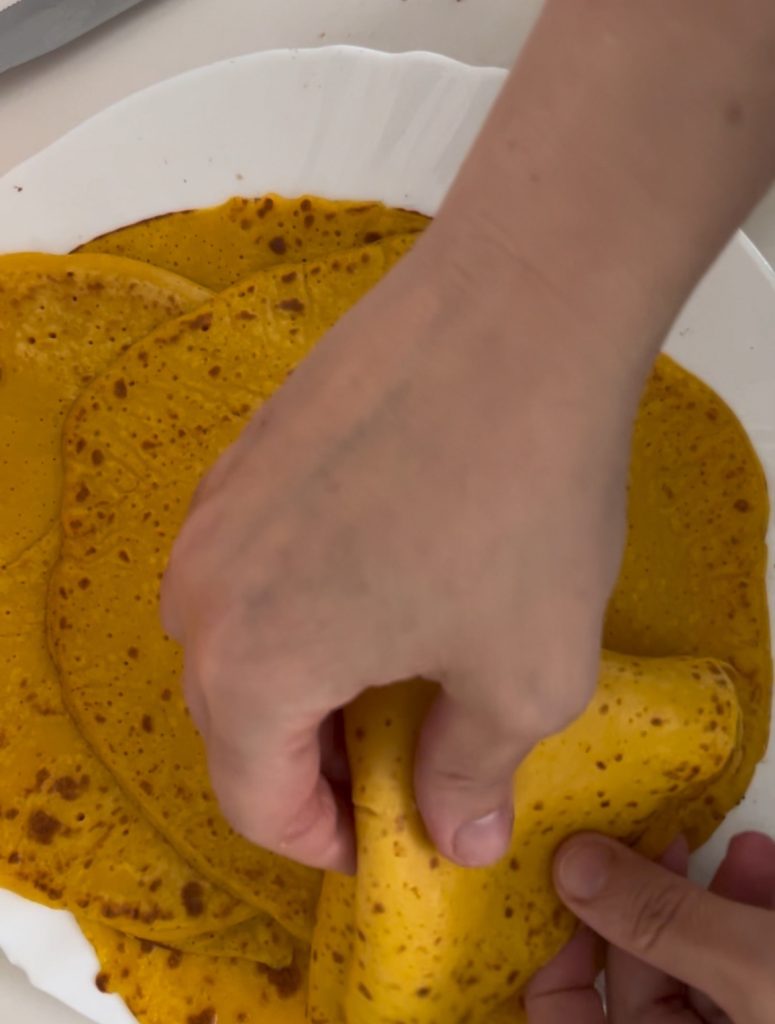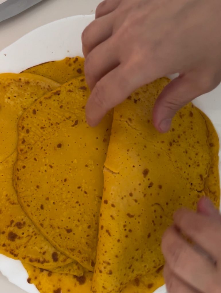 Onze pompoencrêpes zijn klaar om warm en heerlijk te worden geserveerd.