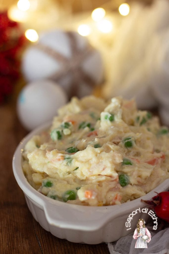 Vandaag een vintage recept dat altijd goed is tijdens de feestdagen, de heerlijke Russische salade/familie recept. We weten allemaal dat het op elke tafel tijdens deze periode te vinden is en de schaal raakt onvermijdelijk leeg. Persoonlijk laat ik jullie het recept zien dat mijn oma altijd maakte. De Russische salade is een zeer geliefd gerecht over de hele wereld, met talloze regionale varianten. Het originele recept van Lucien Olivier is in de loop der tijd verloren gegaan, maar de essentie van het gerecht is gebleven: een mix van groenten, hardgekookte eieren, vlees (vaak vervangen door tonijn, zoals mijn oma deed, of mortadella) en een smaakvolle mayonaise. Dus laten we ook voor deze kerstlunch Russische salade maken.