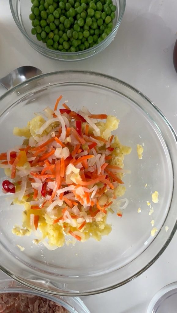 Vandaag een vintage recept dat altijd goed is tijdens de feestdagen, de heerlijke Russische salade/familie recept. We weten allemaal dat het op elke tafel tijdens deze periode te vinden is en de schaal raakt onvermijdelijk leeg. Persoonlijk laat ik jullie het recept zien dat mijn oma altijd maakte. De Russische salade is een zeer geliefd gerecht over de hele wereld, met talloze regionale varianten. Het originele recept van Lucien Olivier is in de loop der tijd verloren gegaan, maar de essentie van het gerecht is gebleven: een mix van groenten, hardgekookte eieren, vlees (vaak vervangen door tonijn, zoals mijn oma deed, of mortadella) en een smaakvolle mayonaise. Dus laten we ook voor deze kerstlunch Russische salade maken.