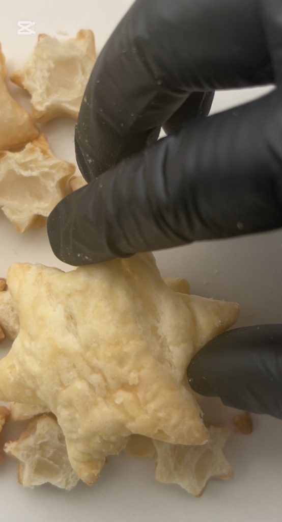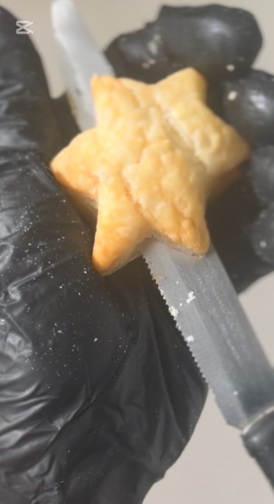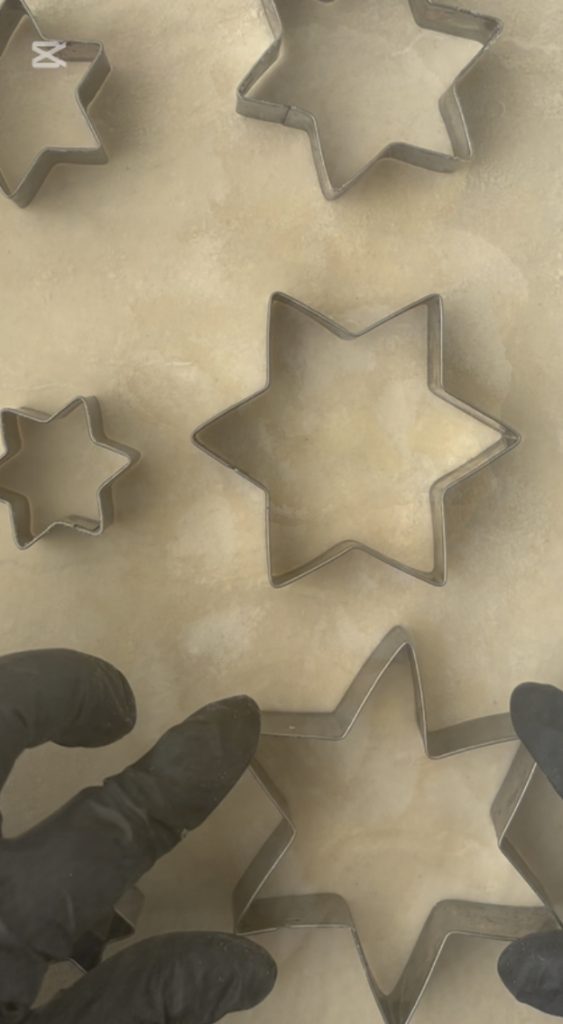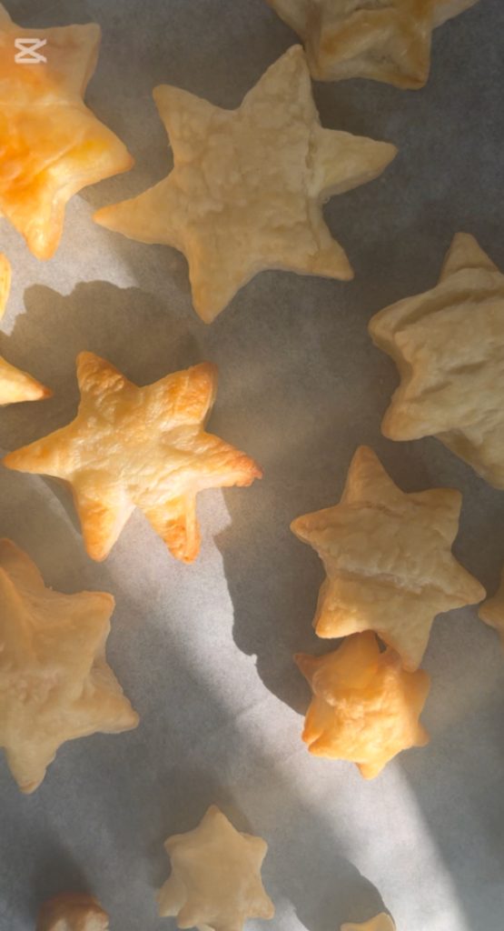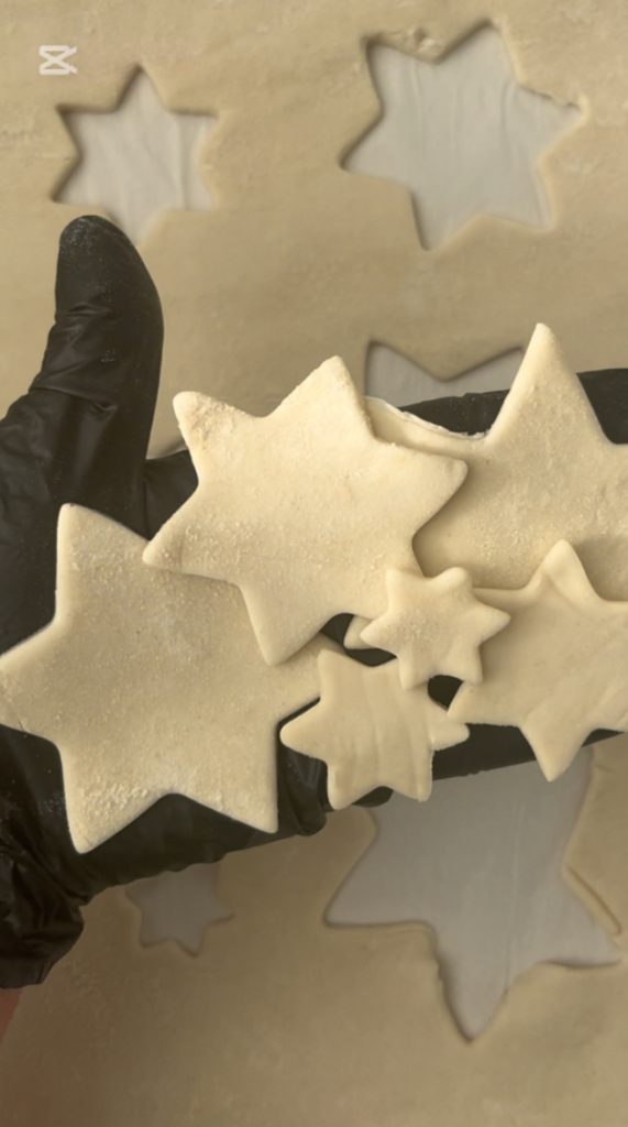 Rol het bladerdeeg uit en snijd ze uit met stervormige uitsteekvormpjes