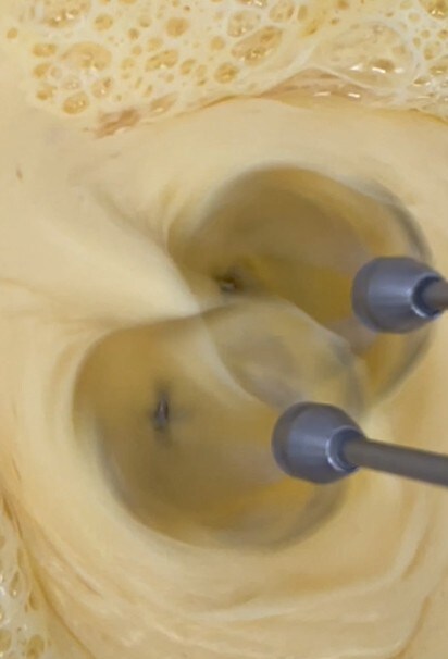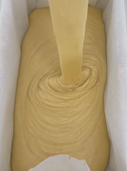 Voeg de gesmolten boter op kamertemperatuur toe.