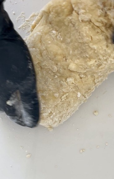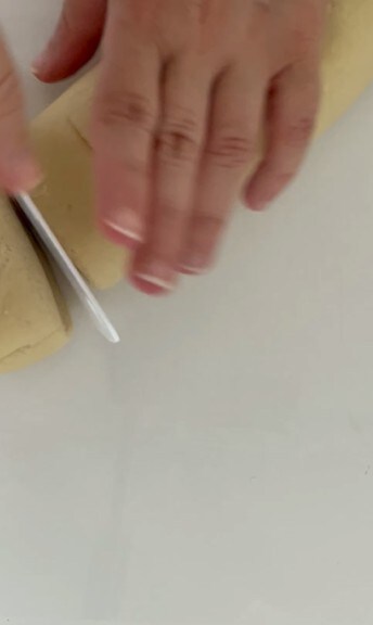 Neem stukken van het deeg en bedek het direct om uitdroging te voorkomen.