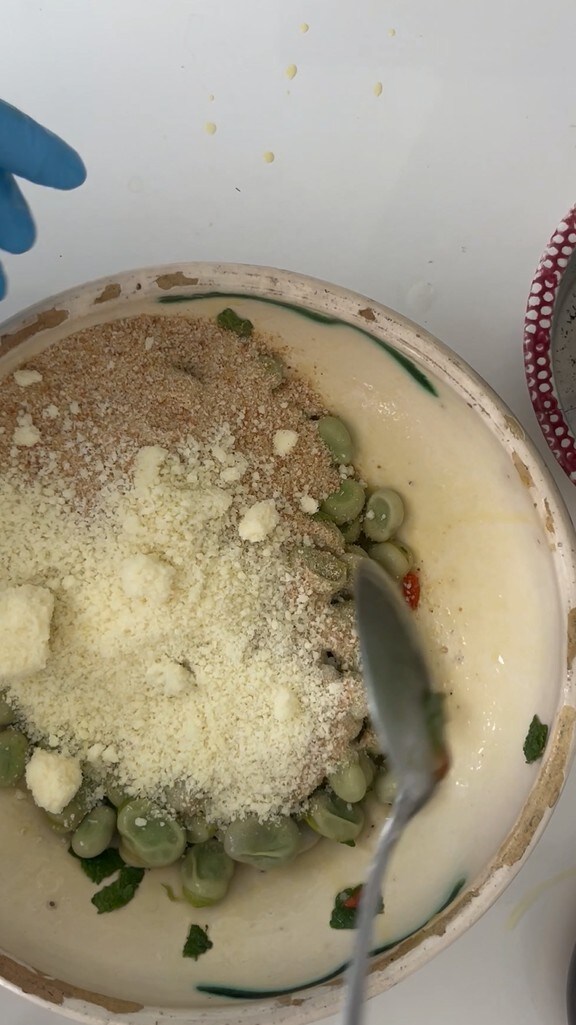 Voeg op dit punt de gekookte tuinbonen toe die inmiddels koud zullen zijn
