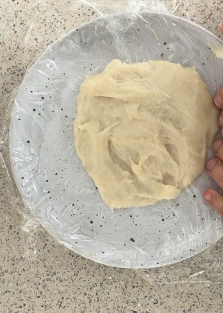 Doe de milk roux in een bord bedekt met plasticfolie en laat het volledig afkoelen