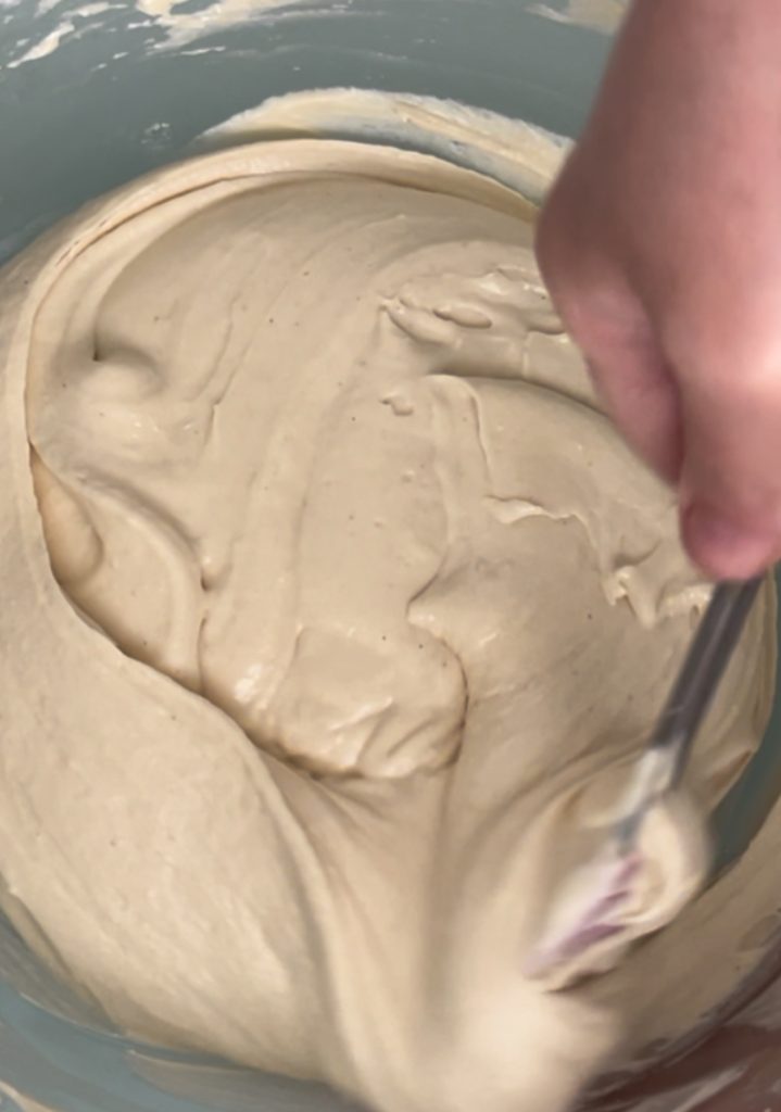 Voeg het toe aan het deeg en werk met de elektrische mixer