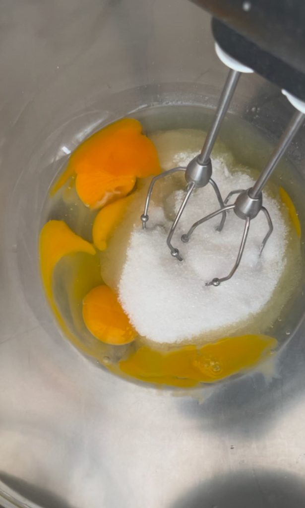In een kom de suiker met de eieren mengen met een elektrische garde