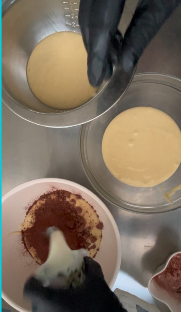 Giet het cacaomengsel in een ingevette en met bloem bestoven vorm.