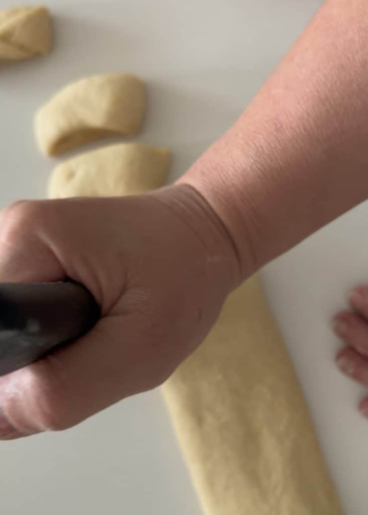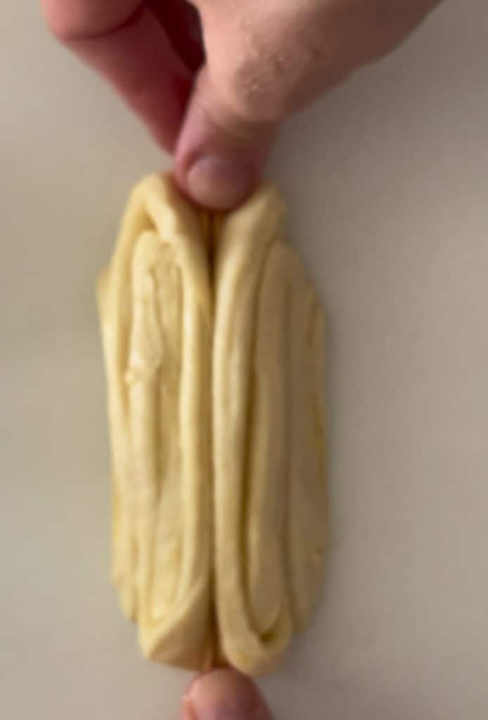 Rek het deeg uit, rol het tussen je handen en sluit goed aan de onderkant