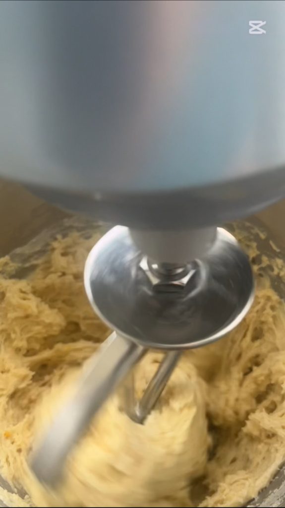 Als het deeg begint te binden aan de haak, voeg dan beetje bij beetje de zachte boter toe