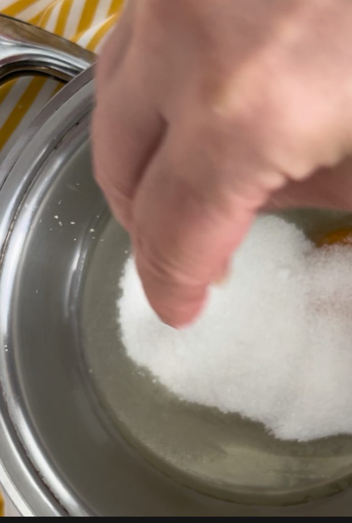 en tenslotte de geraspte citroenschil en het sap van een halve citroen.