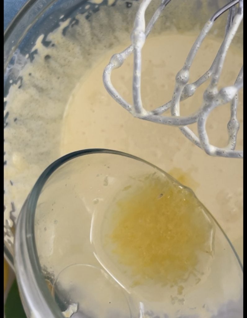Gebruik de elektrische garde om het mengsel goed te mengen en voeg de citroen toe samen met de geraspte schil