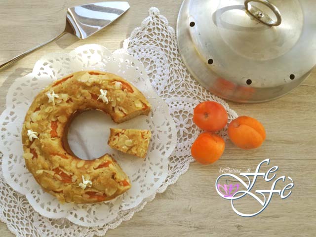 Vierde afspraak met mijn magische Versilia-oven! Ik heb er echt plezier in gekregen en geniet ook van het experimenteren, zonder meer te vrezen dat er iets misgaat als ik me niet strikt aan de doseringen van de meegeleverde recepten houd! Nu durf ik met nonchalance specifieke doseringen en ingrediënten te gebruiken, wetende dat het altijd een groot succes zal zijn, ja, omdat het bakken van taarten (en meer) in deze oven elke keer weer echt verrassend is; je opent het deksel en tovert als het ware onvoorstelbare lekkernijen uit de ‘hoed’, niet omdat ze gewoon zoet zijn, maar omdat ze goed smaken, naar thuis, naar liefde, naar oude herinneringen! Die geuren, die al beleefde smaken, die authentieke smaken die je met een elektrische oven alleen maar kunt hopen te krijgen zonder ze ooit te kunnen bereiken! Ik voel me elke keer zo als ik dit geweldige keukengereedschap gebruik, ik voel me een beetje als een kind, als mijn oma ook heerlijke taarten bakte en me met een lieve glimlach een groot stuk uitsneed, alleen voor mij! En nu ik volwassen ben en zij er niet meer is, lijkt het nog steeds alsof ik haar naast me voel, haar door mijn keuken zie lopen en me met een zachte en liefdevolle stem hoor roepen! Ze zou deze cake met amandelmeel en geurige abrikozenstukjes zeker goedkeuren! Een zoete en lichte cake, zacht als een wolk en zo vochtig dat je er niets bij hoeft te serveren! Fijne ontbijt allemaal!