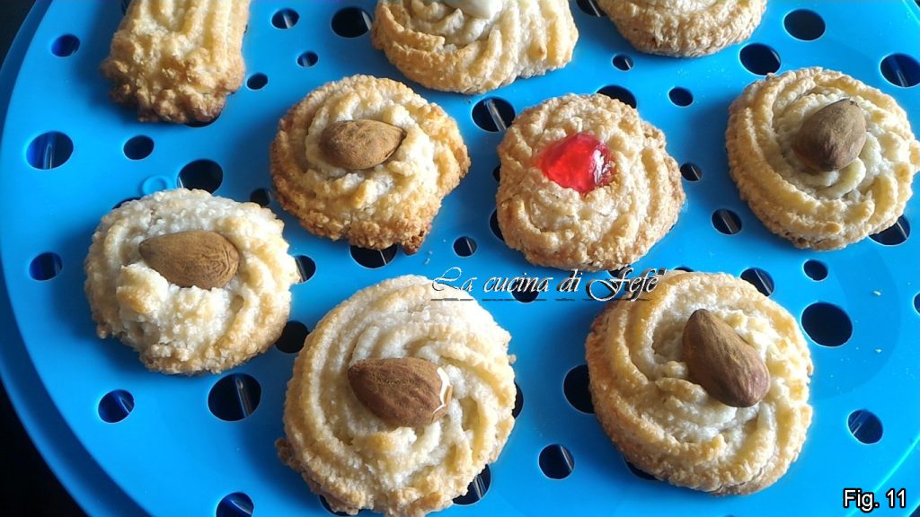 De koekjes moeten niet te veel bakken of donker worden, ze moeten wat wit blijven, anders worden ze te hard en verliezen ze hun kenmerkende zachtheid bij het bijten. Laat ze na het bakken afkoelen op een rooster (fig. 11).