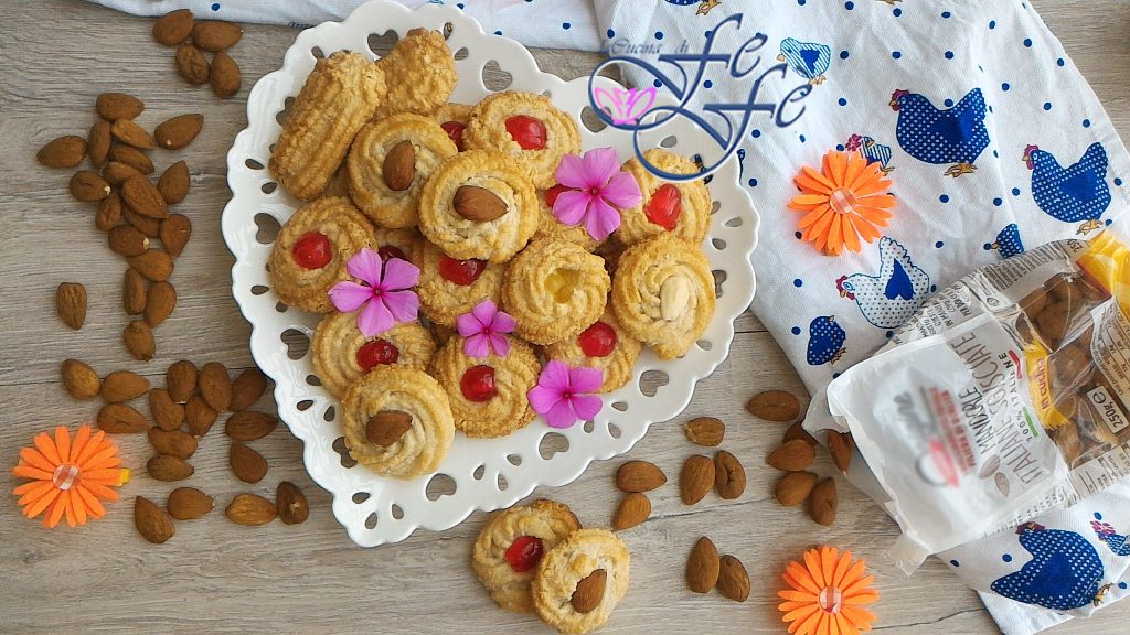 Onlangs, toen ik op mijn blog naar de reeks recepten keek die gewijd zijn aan mijn geliefde land, realiseerde ik me dat ik deze amandelpasta koekjes, oftewel heerlijke koekjes op basis van amandelen, nog niet had voorgesteld! Het is ongelooflijk dat ik het recept nog niet had gepubliceerd, hoewel ik ze vorig jaar al had gemaakt! Maar vervolgens ontstaan er zoveel andere ideeën in je hoofd en wat je van plan was te doen, raakt vaak in de vergetelheid. Dus hier ben ik, om jullie eindelijk deze prachtige traditionele Siciliaanse zoetigheden voor te stellen! In feite worden deze snoepjes tegenwoordig ook in andere regio’s van Zuid-Italië gemaakt en in vele verschillende vormen. Echter, de echte en originele zijn de amandelpasta krullen met daarop een heerlijke gekonfijte kers of in de versie met een hele ongeschilde amandel. Ze zijn heel gemakkelijk te maken, je hoeft alleen maar alle tips te volgen die ik in het recept achterlaat en een beetje vaardigheid te hebben met de spuitzak om echt onweerstaanbare koekjes te bakken! Ze zijn perfect om te serveren met thee of als een zoetigheid na de maaltijd met koffie! Bovendien zijn ze ook glutenvrij, probeer ze ook, je zult er verliefd op worden!
