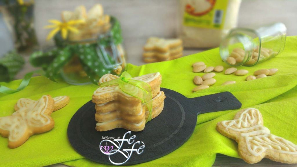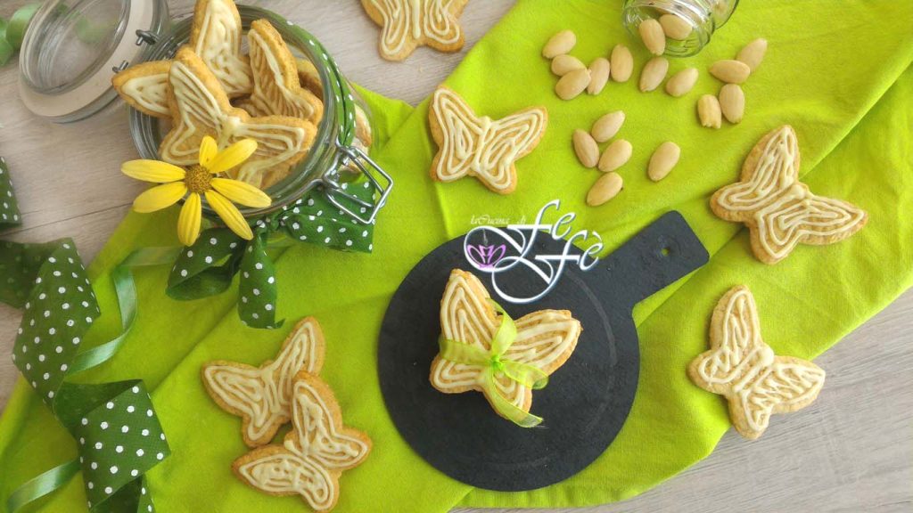 De laatste tijd heb ik mijn liefde voor zelfgemaakte koekjes herontdekt, of beter gezegd, voor het plezier om ze te kneden en steeds anders te maken! Met het beroemde deeg van de pistache en chocolade chiacchiere heb ik enkele kleine aanpassingen gedaan, de procedure aangepast en deze echt verfijnde en heerlijke vlinders gemaakt! Ik heb het pistachemeel en het eiwit weggelaten en een deel van de bloem vervangen door amandelmeel. De kaneellikeur geeft de koekjes bovendien een echt aangename aromatische toets, zozeer zelfs dat mijn man specifiek heeft gevraagd of ik ze nog drie keer voor hem wilde maken! Tot slot is de pure chocoladeglazuur vervangen door witte chocolade, die uitstekend samengaat met de rest van de ingrediënten! Kortom, ze zijn perfecte koekjes voor elke gelegenheid, als snack met thee of om na de maaltijd van te genieten, misschien net de likeur nippend waarmee ze zijn gemaakt! Ze zijn bovendien erg gezond, bedenk dat ze heel weinig boter bevatten, slechts 60 gram in het hele deeg! Nog een reden om ze te maken en zonder al te veel schuldgevoel van te genieten, vind je niet?