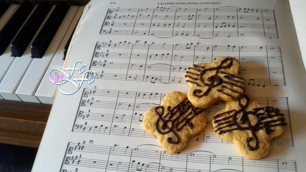 • Als ze zijn afgekoeld, smelt de witte chocolade au bain-marie en giet het, zodra het is afgekoeld, in een wegwerp spuitzak, snijd de dunste punt mogelijk zodat je je koekjes preciezer kunt decoreren (fig. 12).