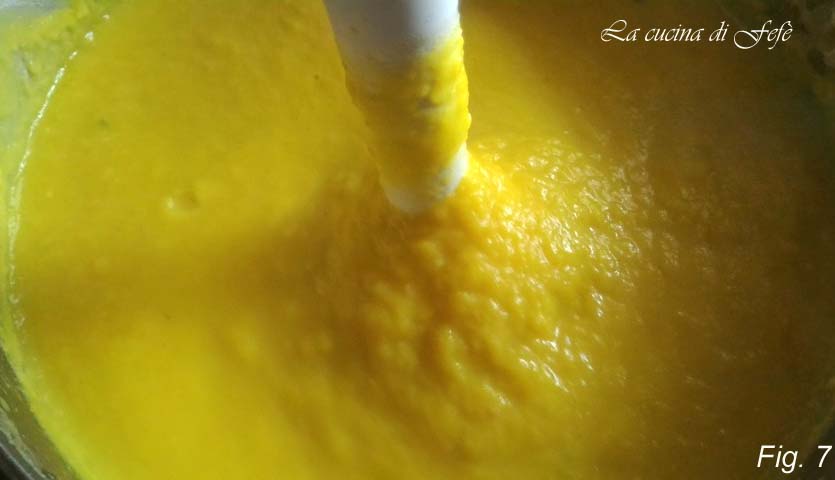 Pureer de soep met een staafmixer tot een gladde en homogene room (fig. 7).