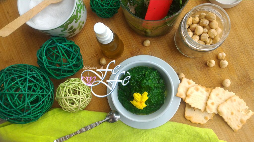 Als ik denk aan de vele soorten pesto die ik thuis heb gemaakt sinds ik mijn kookblog begon, zou ik moeten overwegen om een nieuwe sectie volledig aan hen te wijden! Ik vind het leuk om altijd nieuwe te maken, een beetje zoals hummus en al die bijgerechten voor hoofdgerechten of gewoon om te smeren op crackers, crostini en nog veel meer! Deze pesto is perfect om uw hoofdgerecht te kruiden zoals volkoren spaghetti met cherrytomaatjes en kikkererwten, elke soort en vorm van pasta. Ik geniet er ook graag van op geroosterd brood, waardoor echt speciale en ongewone bruschetta’s ontstaan die ik je misschien later zal voorstellen! Ondertussen zal ik je vertellen dat het binnen een oogwenk klaar is; je hoeft alleen de boerenkool een paar minuten te blancheren en ze in een blender te mixen met alle andere basis ingrediënten voor de bereiding van een pesto, en het is klaar! Ik heb de pijnboompitten vervangen door geroosterde hazelnoten, die naar mijn mening een nog geuriger noot hebben gegeven, maar je kunt ervoor kiezen om andere noten zoals walnoten of amandelen te gebruiken. Bovendien raad ik aan om de hoeveelheden te verdubbelen voor praktische doeleinden, zodat je altijd voorraden hebt die klaar zijn om in te vriezen en te gebruiken op basis van je behoeften! Bovendien heb je altijd alle voordelen van deze gezonde groente bij de hand, zelfs buiten het seizoen. Probeer het en overtuig jezelf!