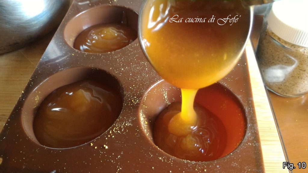Met behulp van een pollepel, giet de gelei in de vormpjes in een halve bolvorm of andere vormen of dessertkommetjes, afhankelijk van hoe je het wilt serveren.