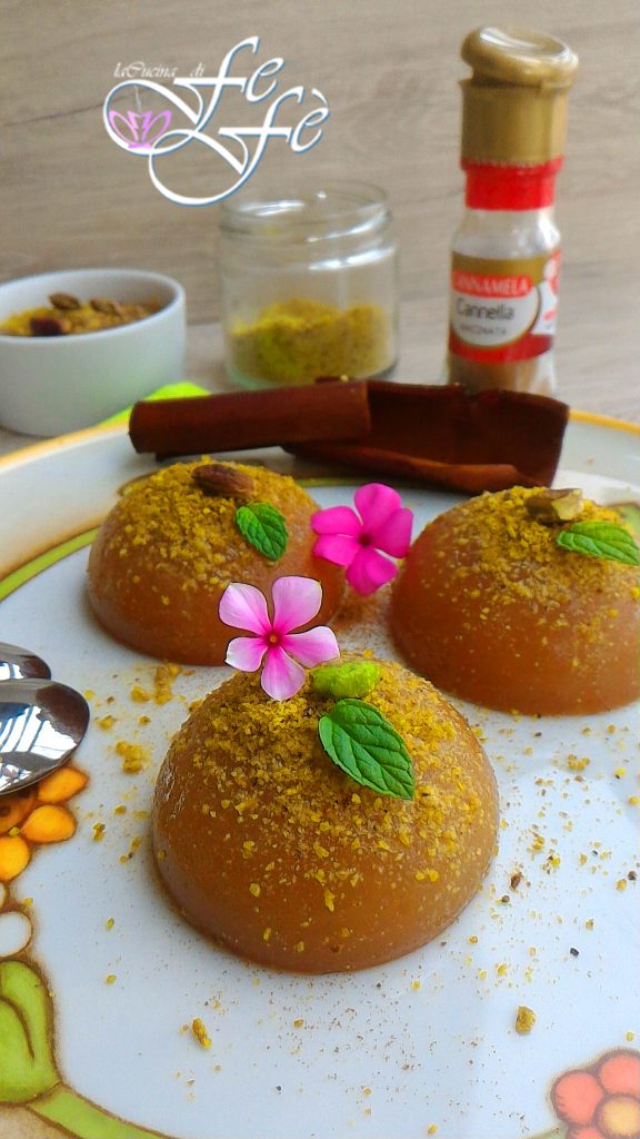 Een paar avonden geleden, terwijl ik zoals gewoonlijk met mijn nicht over koken sprak, ontdekte ik dat ik nog nooit het proces van een van de beroemdste desserts in Sicilië, de cannella gelei, op de blog had geschreven! Op haar verzoek ben ik dus meteen aan de slag gegaan om dit gebrek goed te maken! En zoals men in deze gevallen zou zeggen, sloeg ik twee vliegen in één klap, voldaan aan de wens van een dierbare en tegemoetkomend aan de behoefte om mijn blog te verrijken met een ander recept uit mijn geliefde land. Vergeet niet dat praten over koken niet alleen gaat over het verstrekken van hoeveelheden en procedures, maar het betreden van een feitelijke erfenis van kennis! Daarom wil ik allereerst een noodzakelijke verduidelijking maken voor degenen die de betekenis achter de naam van dit typische dessert niet kennen. De term gelo kan namelijk doen vermoeden dat het om een soort ijs of sorbet gaat, terwijl het niets anders is dan een Siciliaanse uitdrukking die verwijst naar een pudding. De gelo heeft namelijk een gelatineachtige consistentie, te danken aan de toevoeging van maïszetmeel tussen de weinige ingrediënten waaruit het bestaat. Er zijn verschillende varianten afhankelijk van de seizoensgebonden beschikbaarheid, zoals die met watermeloen of zomerse perzik, en in de winter met amandelen. In dit geval is het sterk gearomatiseerd met kaneel. Als je dus een liefhebber bent van deze veelzijdige en kostbare specerij, mag je de procedure om het te maken absoluut niet missen! Ik koos ervoor mijn gelei te garneren met pistachemeel strikt uit Bronte, omdat dat zo de traditie wil, maar niets weerhoudt je ervan om het te serveren met slagroom of wat je fantasie je maar ingeeft!