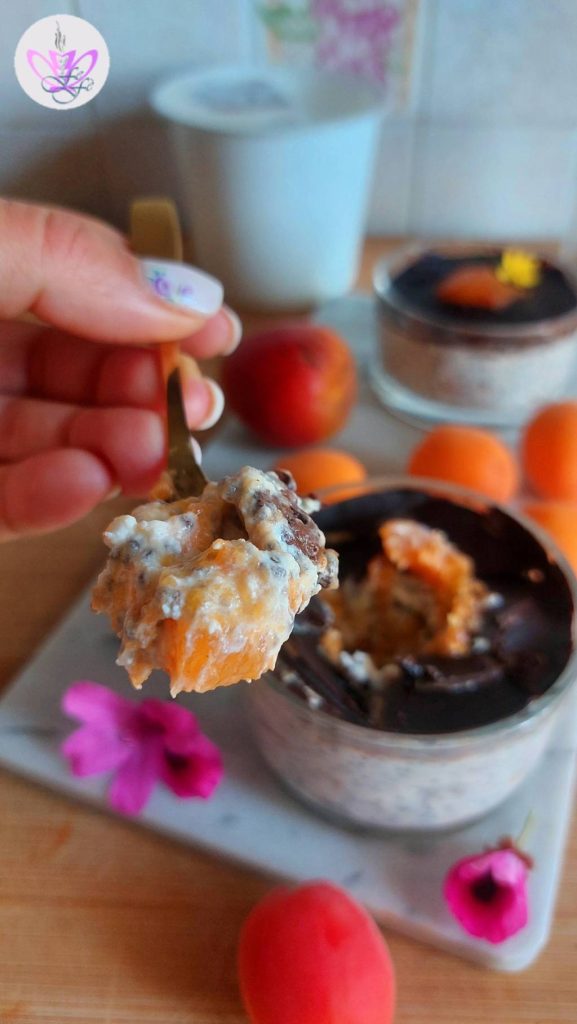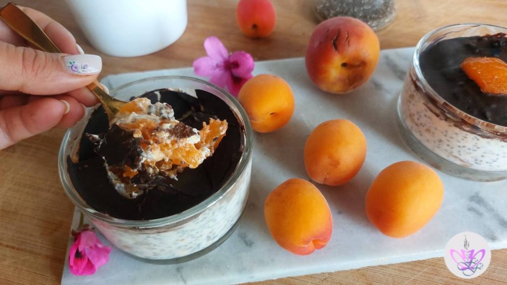 Laatst raden voedingsdeskundigen aan om altijd te variëren in het ontbijt en deze verplichting om te zetten in een goede en gezonde levensgewoonte! Daarom heeft mijn werk hier op de blog de laatste tijd meer aandacht besteed aan deze voedingskeuzes, die ik juist vind om ons te beschermen tegen de enorme hoeveelheid junkfood die op de markt verkrijgbaar is! Zo is er een nieuwe sectie van fit recepten ontstaan die hiervoor nuttig is! Vandaag stel ik je bijvoorbeeld een rijk en vullend ontbijt voor op basis van chiazaad, een kleine maar krachtige bondgenoot voor het welzijn van ons lichaam dankzij zijn ontelbare eigenschappen. Hun dagelijkse consumptie is zeer voordelig; als we een theelepel chiazaad in water zouden onderdompelen, zouden we meteen merken hoeveel vloeistof ze kunnen vasthouden; om deze reden kunnen ze worden beschouwd als “kleine sponsjes” die, door op te zwellen, het voedselvolume in het spijsverteringskanaal vergroten, wat resulteert in een groter gevoel van verzadiging en een lagere calorie-inname! Hier, in deze kommetjes ontworpen voor jou die aandacht besteedt aan voeding, kun je dus niet alleen de voordelen van chiazaad vinden, maar ook alle rijkdom aan mineralen en vitamines van abrikozen, de melkzuurbacteriën van yoghurt, de hoge eiwitwaarde van ricotta en de energieke en stimulerende eigenschappen van pure chocolade! Bovendien zijn ze ook ontzettend lekker, dankzij de knapperige laag die, eenmaal gebroken met een lepel, een romige en weelderige vulling onthult. Je zult zien, deze chia bowl wordt een van je favoriete ontbijten ooit!
