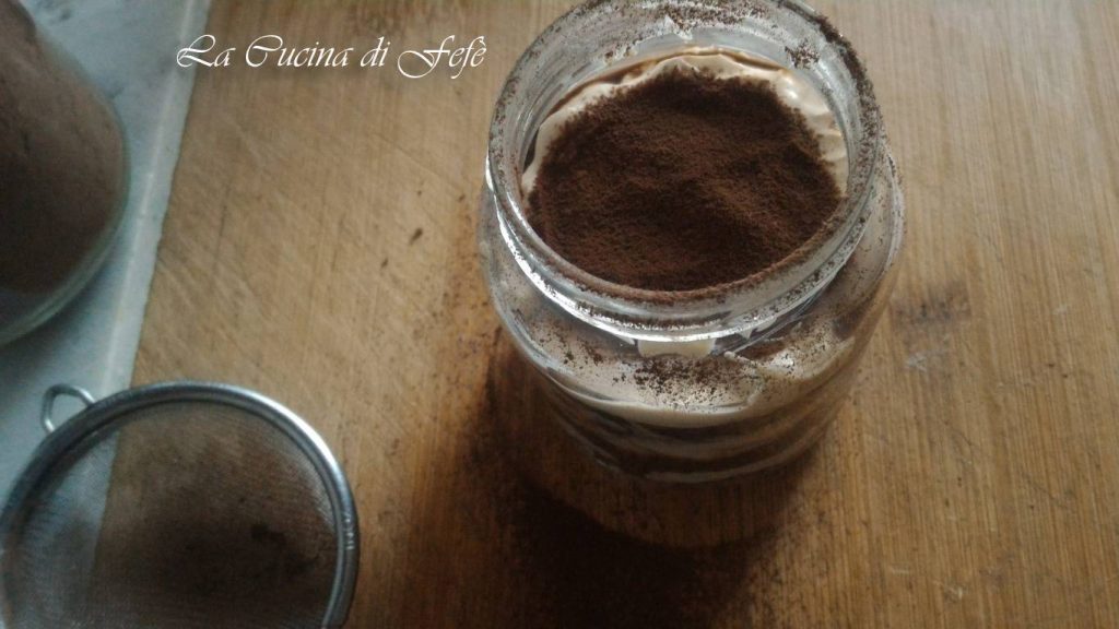 • Herhaal de lagen totdat alle ingrediënten op zijn, voeg de yoghurt als laatste toe. Werk af met een laagje cacao.