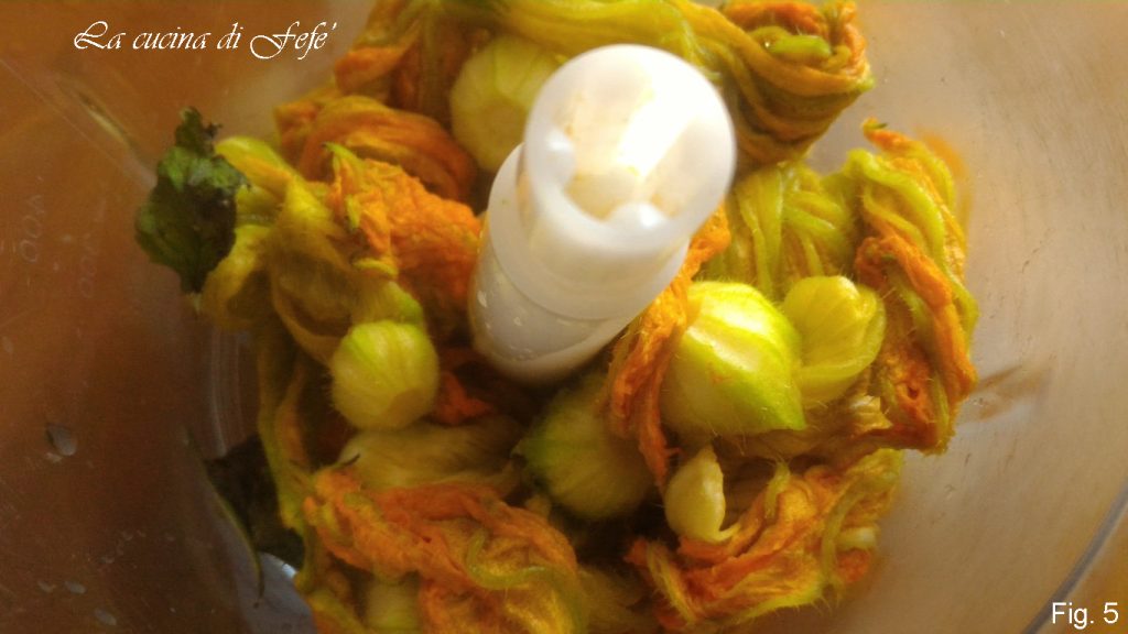 Wie houdt er niet van courgettebloemen, steek je hand op! En gezien het seizoen zie je er veel op de groente- en fruitafdelingen. Ze zijn zo mooi en verleidelijk dat ze me ertoe aanzetten om ze in industriële hoeveelheden te kopen! Ze zouden heerlijk zijn als ze beslaggebakken zijn, maar hun lichte versie in de oven, vaak gevuld met ricotta, is ook een goed alternatief. Maar als je het zat bent om ze altijd op dezelfde manier te bereiden, hier is een smakelijk, snel en eenvoudig idee om ze op hun best te gebruiken! Dit jaar heb ik verschillende voorraden pesto gemaakt die je gemakkelijk kunt invriezen en uit de vriezer kunt halen wanneer je maar wilt! Het heeft een echt speciale en ongewone smaak, en zijn romigheid zal je veroveren! Zoals alle soorten pesto is deze vrij veelzijdig! Het zal namelijk niet alleen perfect zijn om eerste gangen op smaak te brengen en tweede gangen van wit en rood vlees te begeleiden, maar je kunt het smeren op crostini, bruschetta en alles wat je fantasie je maar ingeeft!