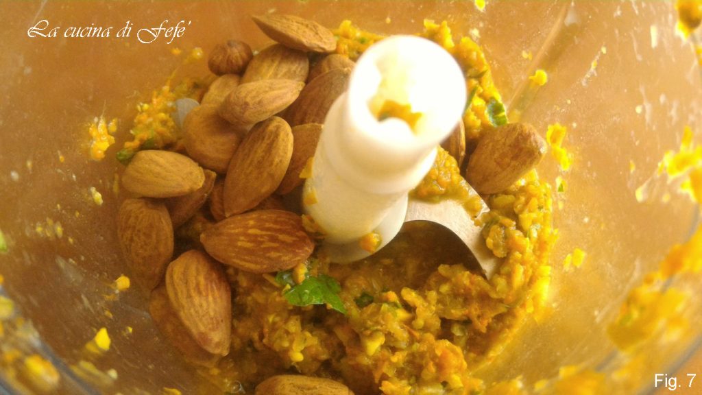 Maal tot je een nog redelijk grove massa hebt, voeg dan ook de amandelen toe.