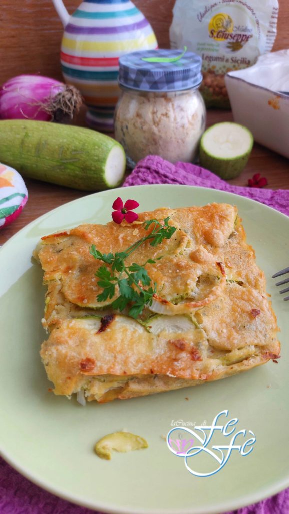 En na de beroemde venkel in de oven gebakken beslag, kon ik de meer zomerse versie met courgettes en rode ui die ik zo adoreer niet proberen? Je maakt ze door ze te kruiden met mijn speciale en super geteste eiwitrijke beslag op basis van kikkererwtenmeel en water, waardoor ze zeer voedzaam en smakelijk worden! Bovendien zijn ze op deze manier zowel geschikt voor mensen die glutenvrij moeten eten, als voor vegetariërs, dus als je gasten hebt met deze dieetwensen, zul je ze zeker veroveren! Ze zijn in een mum van tijd klaar, omdat de groenten gewoon gesneden en rauw direct in de ovenschaal worden gelegd, zonder andere pannen vuil te maken! Een van de meest eenvoudige recepten die ik je kan aanbieden en die ongetwijfeld gewaardeerd zal worden door wie echt weinig tijd aan koken kan besteden! Voor het gemak kun je ze ook de dag ervoor bereiden en dan vlak voor het serveren opwarmen! Op deze manier zijn ze ook perfect om mee te nemen als lunchbox naar kantoor of voor een dagje uit. Koud en in blokjes gesneden, zijn het ook geweldige hapjes om bij een aperitief te serveren!