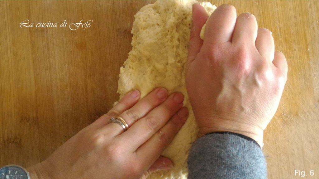 Blijf ongeveer 15 minuten kneden terwijl je het deeg op een niet bebloemd werkvlak legt (fig. 6).