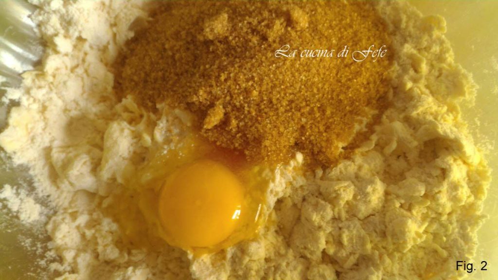 Je moet een zanderige textuur krijgen, maar zonder het lang te bewerken, om te voorkomen dat de boter te warm wordt. Voeg dan het ei, het snufje zout en de suiker toe.