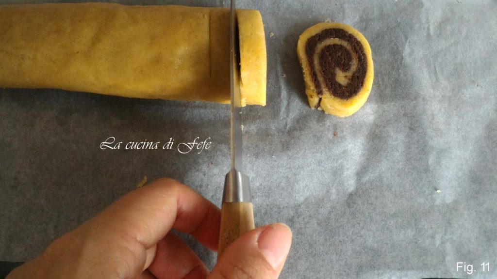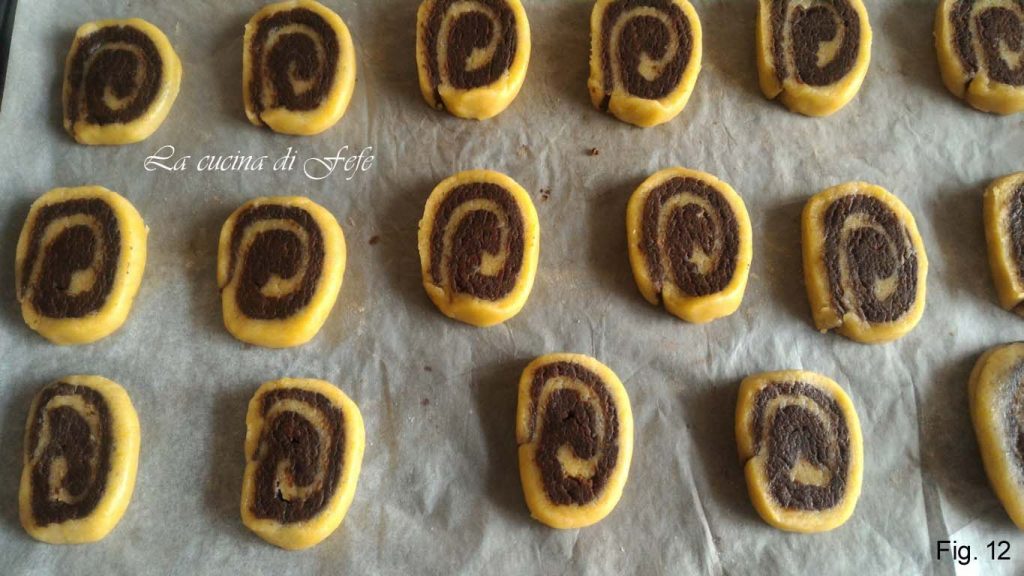 Als de koekjes “instorten” of het tweekleurige patroon verliezen, betekent dit dat de boter te warm was voordat ze werden gebakken. Zet de bakplaat met de gesneden koekjes 10′ minuten in de koelkast terwijl de oven de temperatuur bereikt (180°C statisch). De thermische schok zal de perfecte vorm behouden