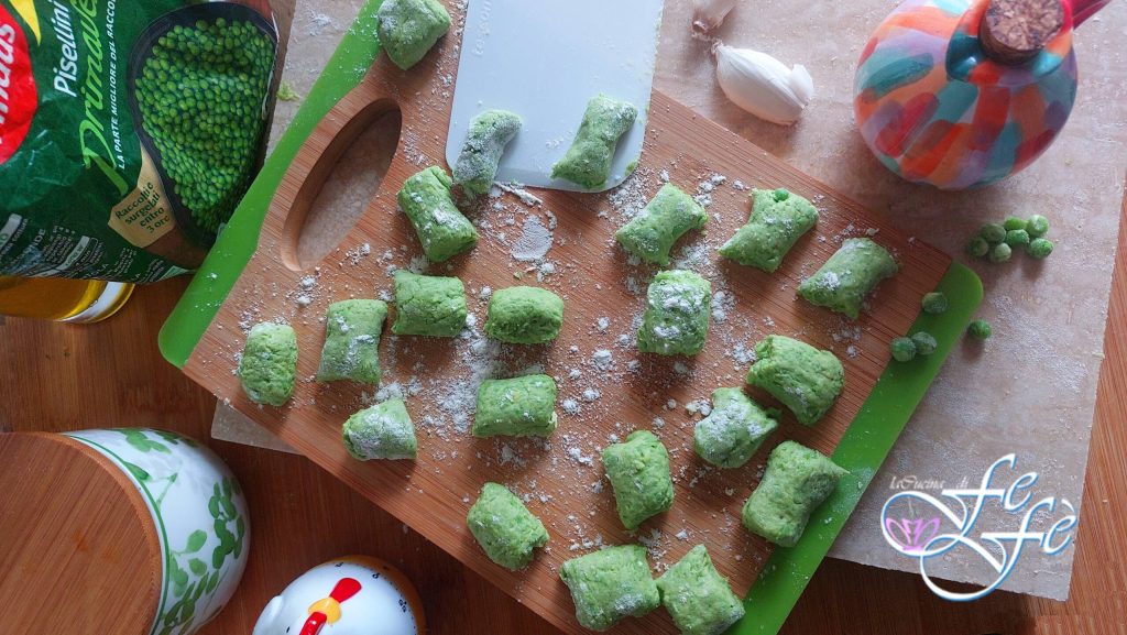 👉 Je kunt de erwten gnocchi van tevoren bereiden en in de koelkast bewaren gewikkeld in een schone doek en licht bestoven met bloem. Of in geschikte containers voor koeling, altijd licht bestoven en gescheiden door kleine stukjes bakpapier voor maximaal 2-3 dagen.