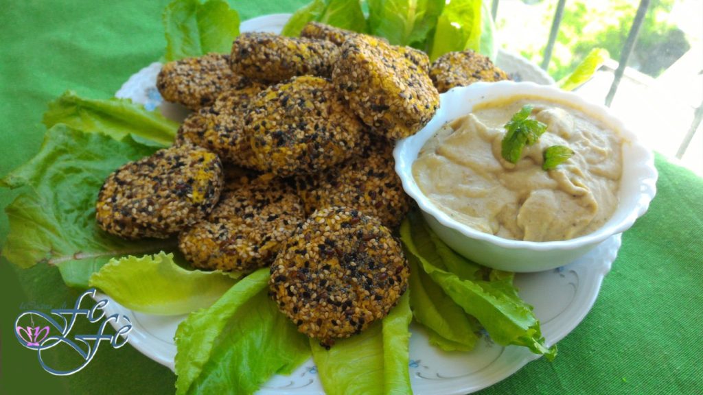 FALAFEL VAN KIKKERERWTEN IN AUBERGINESAUS